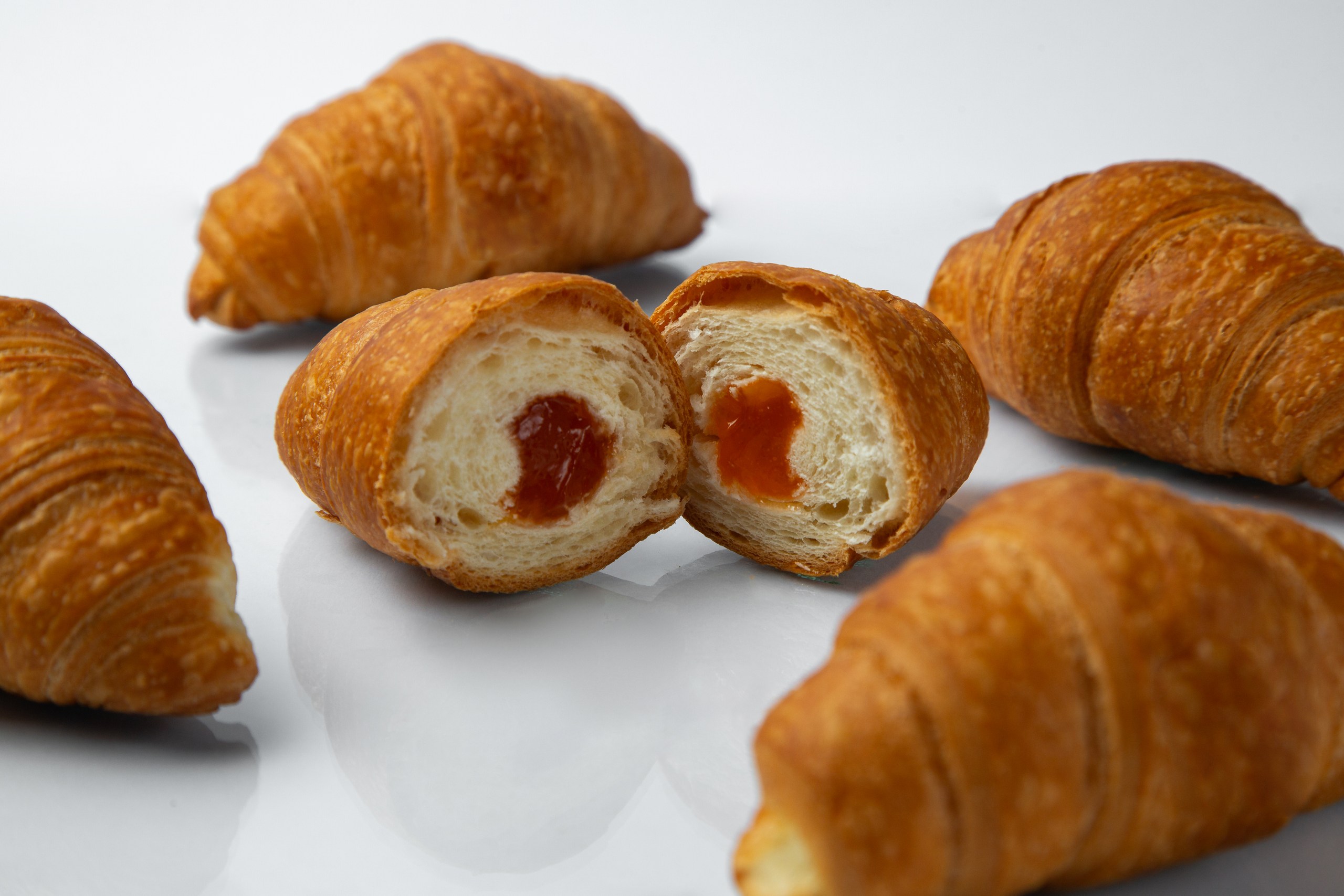 Неперевершені міні-круасани с листкового тіста в асортименті з фруктовими смаками (Вишня, Полуниця, Малина Абрикоса, Чорна смородина, Манго). Всі начинки власного виробництва.