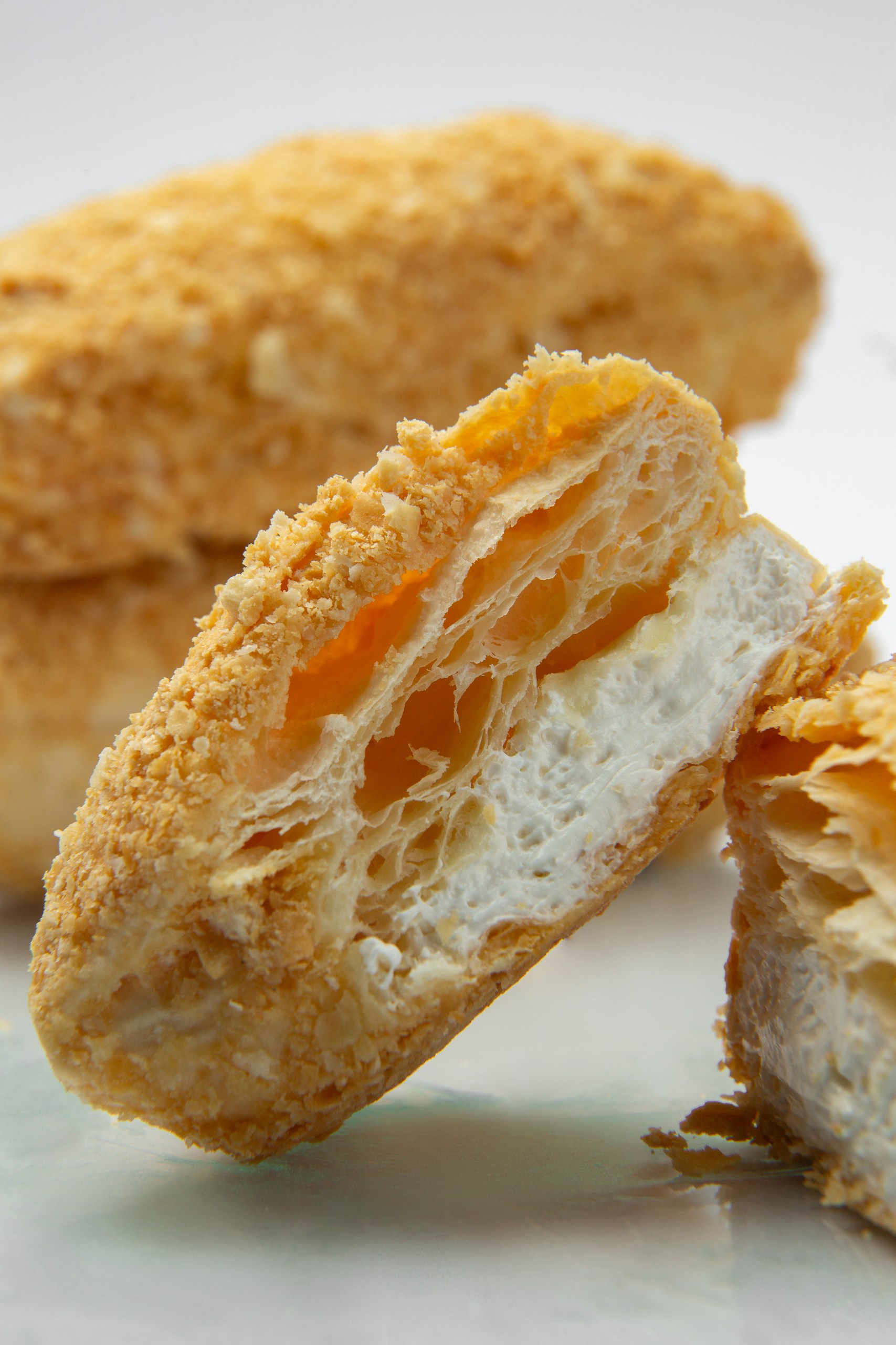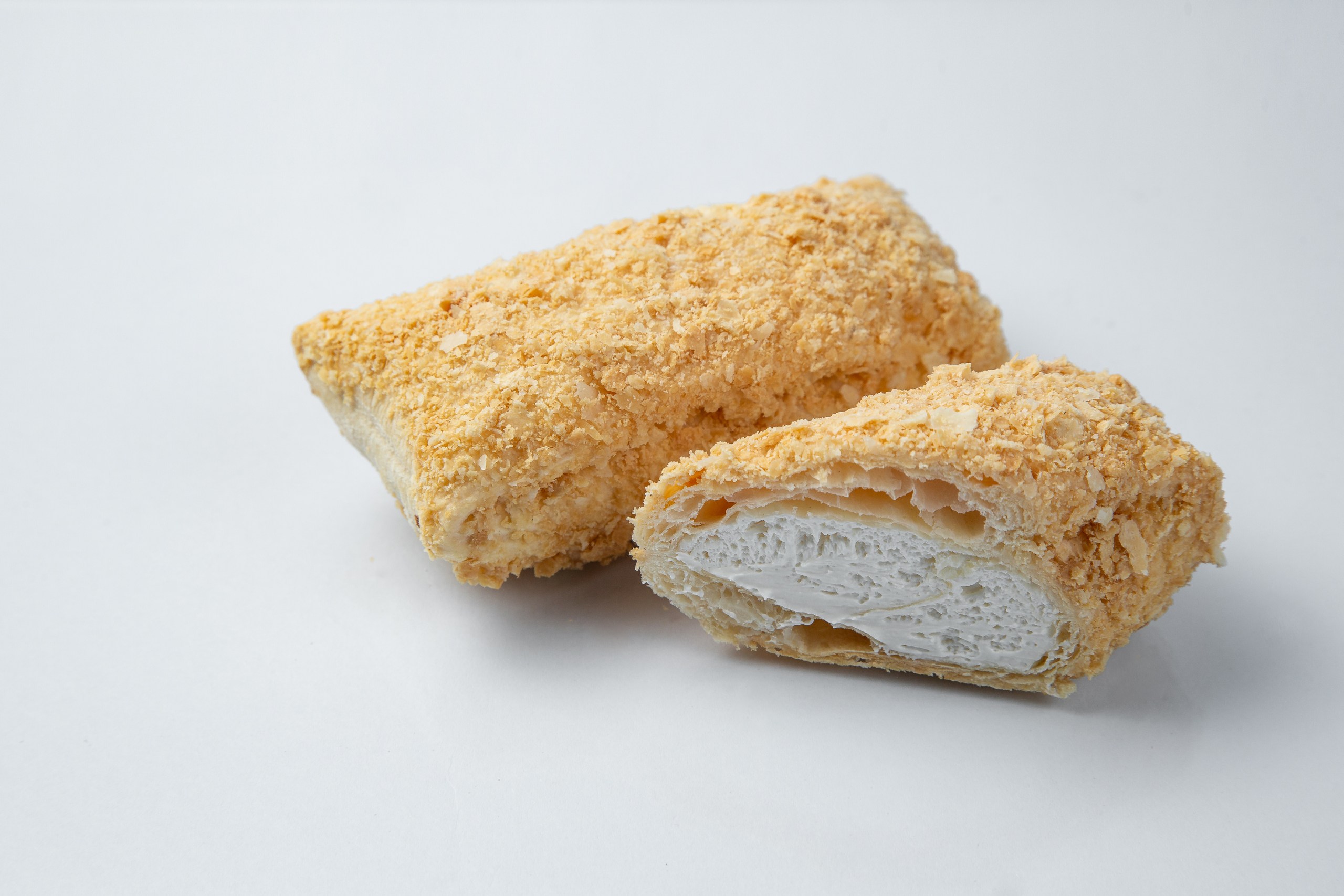 Повітряні листкові прошарки з  ніжними збитими вершками оздобленні згущеним молоком та крихтою